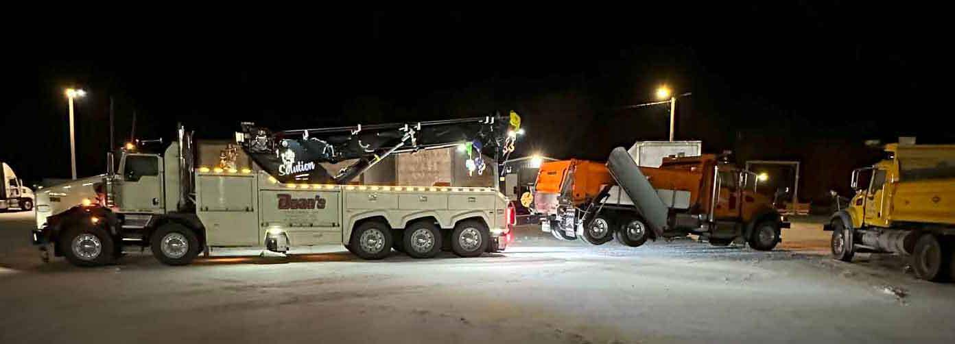 When a semi goes down, a rollover blocks the highway, or equipment needs to move, Dean's Towing gets there fast.